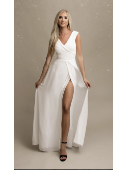 spettacolare abito impero in chiffon  con scollo all'americana e schiena scoperta