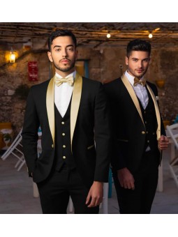 Abito tipo smoking con petto raso sciallato lucido un bottone con tasche a friso rivestite e bottoni ricoperti in raso vestibilità slim drop/7
