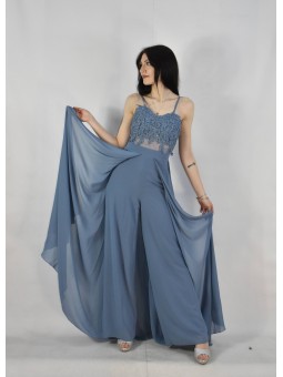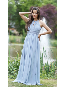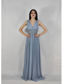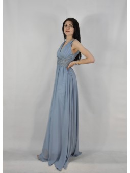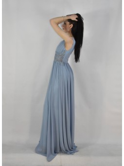 spettacolare abito impero in chiffon  con scollo all'americana e schiena scoperta