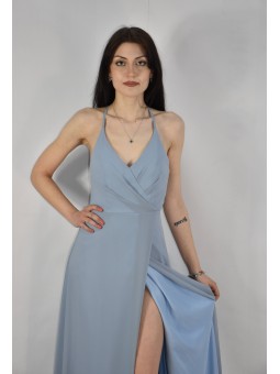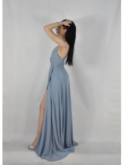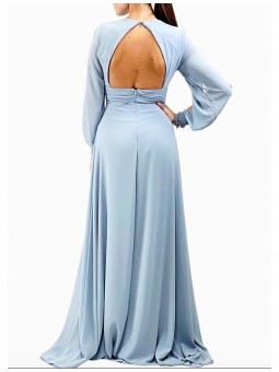 Abito con spacco morbido e velato scollo a V manica lunga velata trasparente con apertura centrale e vita fasciata