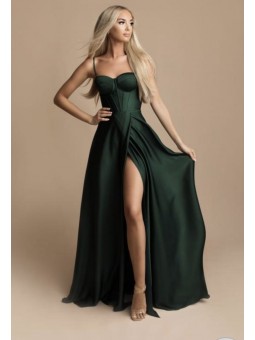 abito impero in raso con spacco e corpetto a cuore