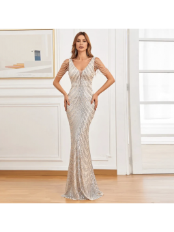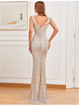 abito omerale glitterato con scollo a cuore