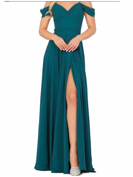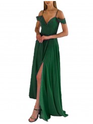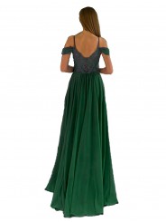 abito omerale con spacco laterale e ricamo sulla schiena