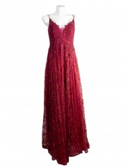 abito lungo glitterato con corpetto ricamato e spacco laterale