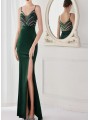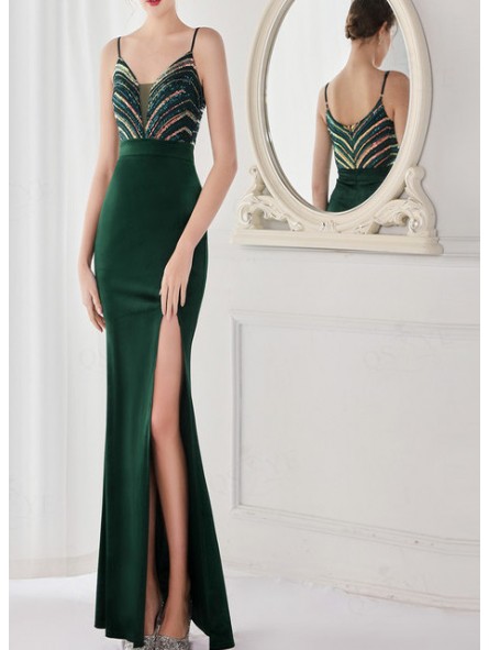 abito sirena in velluto con spacco laterale e corpetto con pailettes