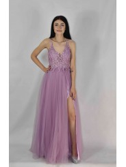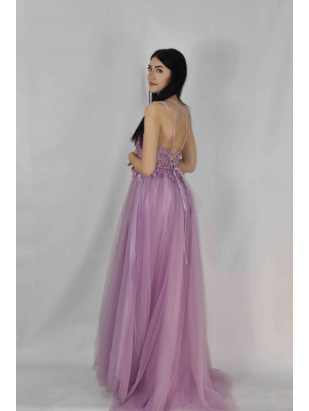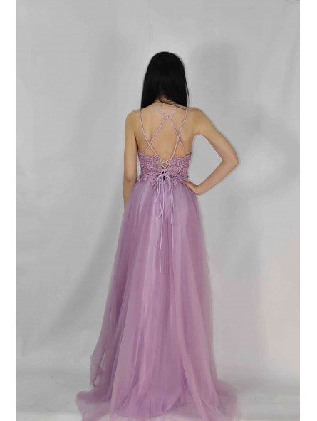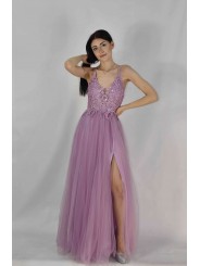 abito impero in tulle con spacco laterale