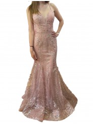 abito sirena in glitter e pailettes con lacci regolabili sulla schiena