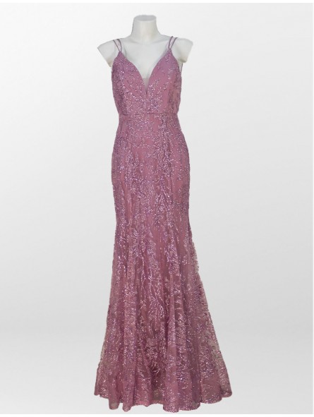 abito sirena in glitter e pailettes con lacci regolabili sulla schiena