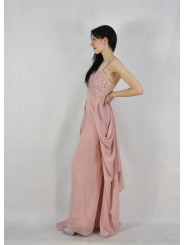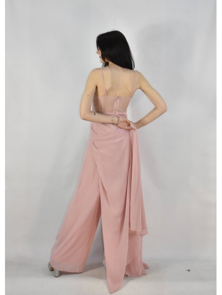 tuta con corpetto ricamato pantalone a zampa e coda