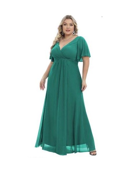 abito con maniche velate scollo a V e spacco laterale