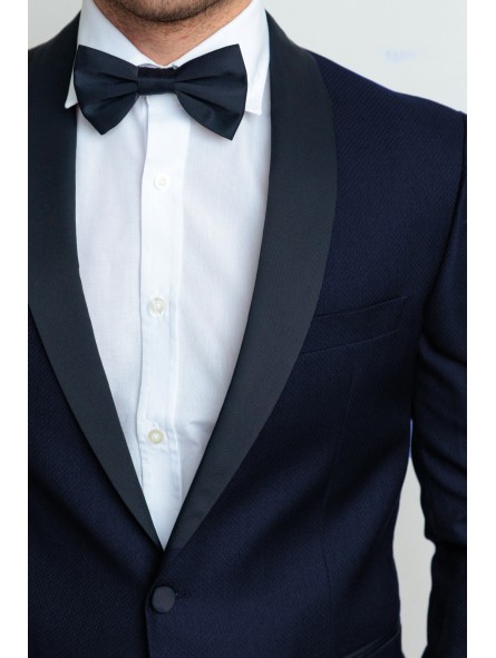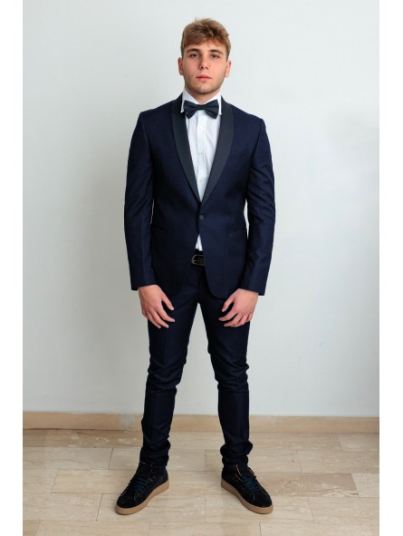 Abito smoking con petto raso sciallato lucido, bottoni ricoperti in raso vestibilità slim