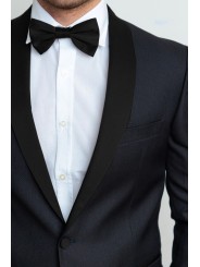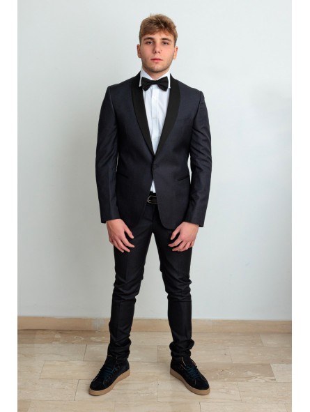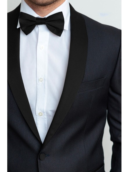 Abito smoking con petto raso sciallato lucido, bottoni ricoperti in raso vestibilità slim