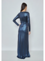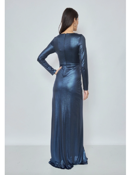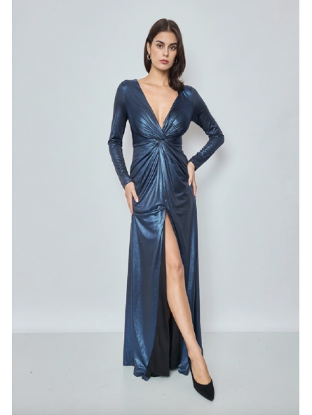 abito in tessuto lurex super aderente   manica lunga scollo a V nodo su addome e spacco sexy