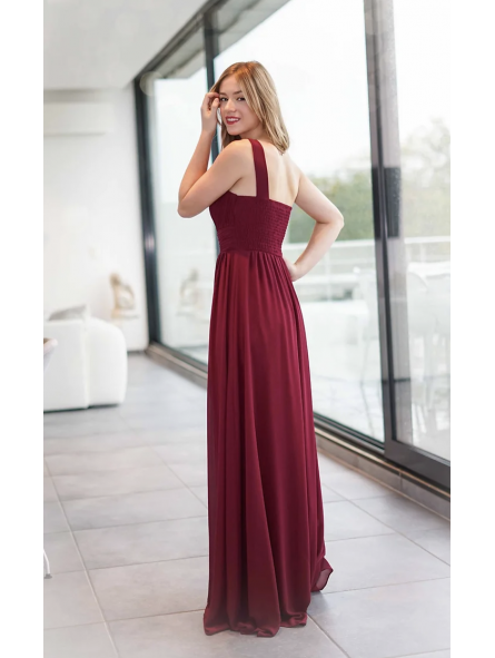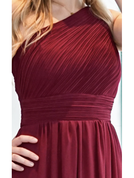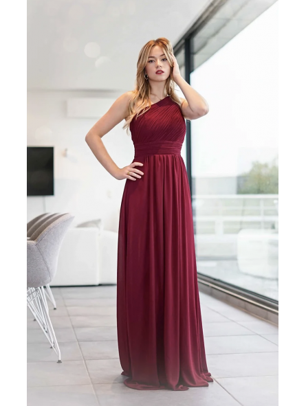 Abito lungo monospalla elegante in tessuto georgette con fascia elastica posteriore adattabile a qualsiasi corporatura con ottima vestibilità ideale per qualsiasi tipo di evento in particolar modo, l'abito più gettonato  per damigelle