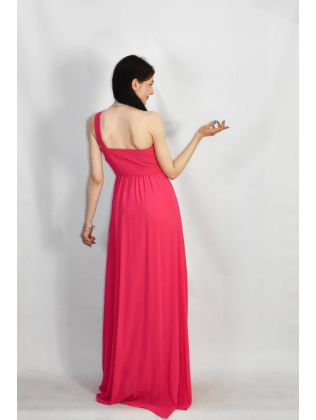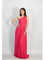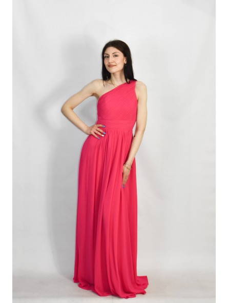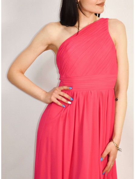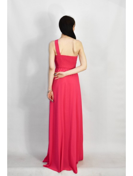 Abito lungo monospalla elegante in tessuto georgette con fascia elastica posteriore adattabile a qualsiasi corporatura con ottima vestibilità ideale per qualsiasi tipo di evento in particolar modo, l'abito più gettonato  per damigelle
