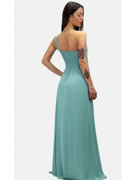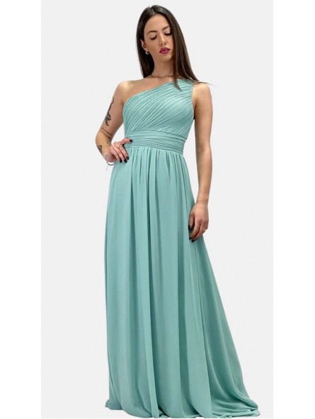 Abito lungo monospalla elegante in tessuto georgette con fascia elastica posteriore adattabile a qualsiasi corporatura con ottima vestibilità ideale per qualsiasi tipo di evento in particolar modo, l'abito più gettonato  per damigelle