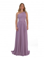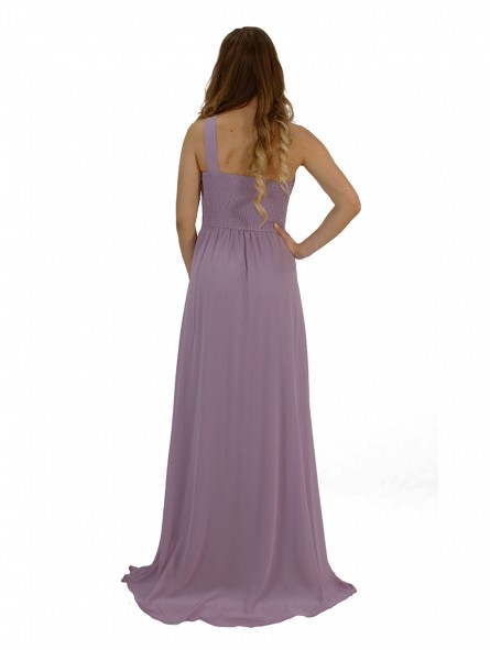 Abito lungo monospalla elegante in tessuto georgette con fascia elastica posteriore adattabile a qualsiasi corporatura con ottima vestibilità ideale per qualsiasi tipo di evento in particolar modo, l'abito più gettonato  per damigelle