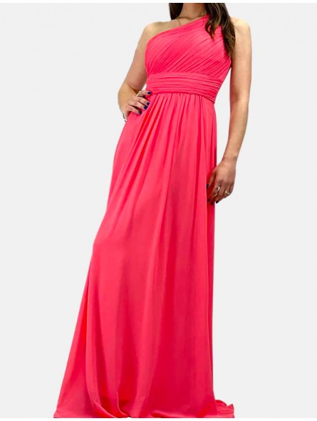 Abito lungo monospalla elegante in tessuto georgette con fascia elastica posteriore adattabile a qualsiasi corporatura con ottima vestibilità ideale per qualsiasi tipo di evento in particolar modo, l'abito più gettonato  per damigelle