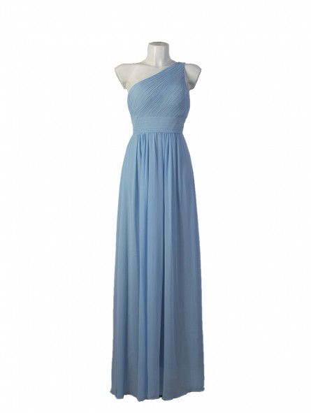 Abito lungo monospalla elegante in tessuto georgette con fascia elastica posteriore adattabile a qualsiasi corporatura con ottima vestibilità ideale per qualsiasi tipo di evento in particolar modo, l'abito più gettonato per damigelle