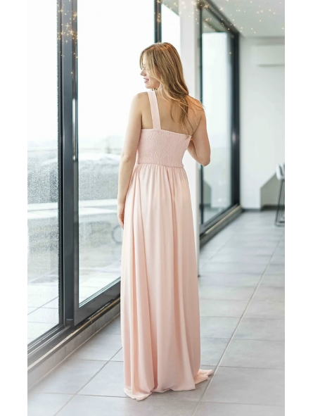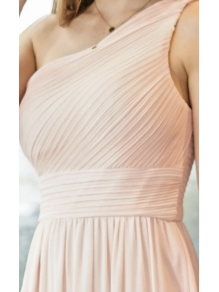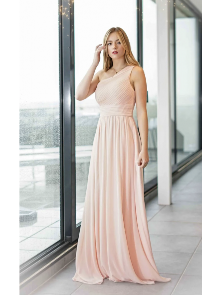 Abito lungo monospalla elegante in tessuto georgette con fascia elastica posteriore adattabile a qualsiasi corporatura con ottima vestibilità ideale per qualsiasi tipo di evento in particolar modo, l'abito più gettonato  per damigelle