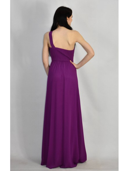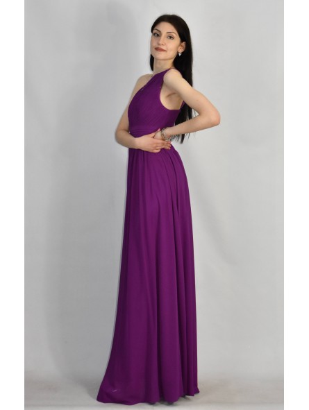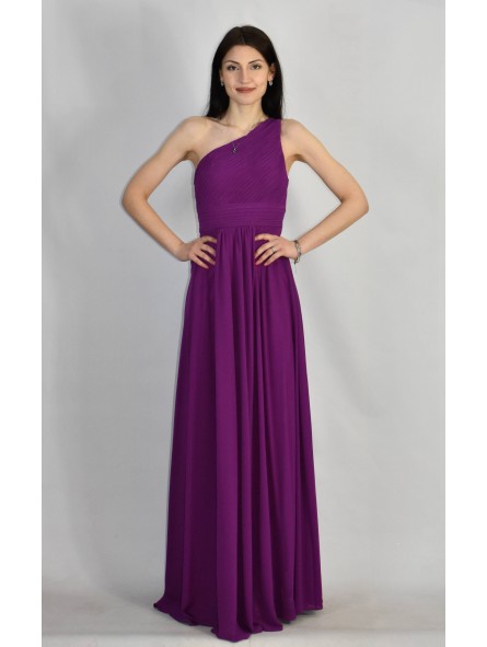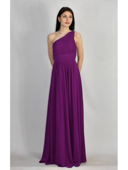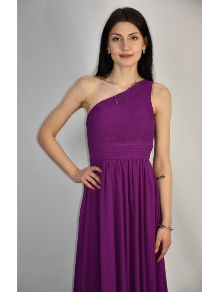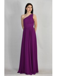 Abito lungo monospalla elegante in tessuto georgette con fascia elastica posteriore adattabile a qualsiasi corporatura con ottima vestibilità ideale per qualsiasi tipo di evento in particolar modo, l'abito più gettonato per damigelle