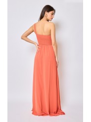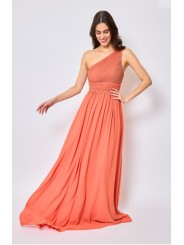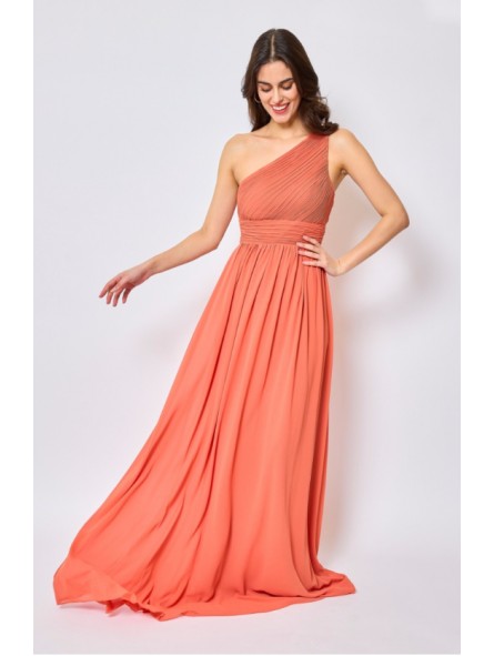 Abito lungo monospalla elegante in tessuto georgette con fascia elastica posteriore adattabile a qualsiasi corporatura con ottima vestibilità ideale per qualsiasi tipo di evento in particolar modo, l'abito più gettonato  per damigelle
