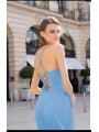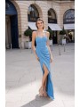 Abito sirena in raso  con corpetto a stecche e spacco laterale