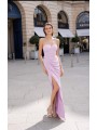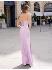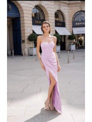 Abito sirena in raso  con corpetto a stecche e spacco laterale