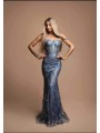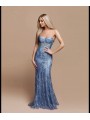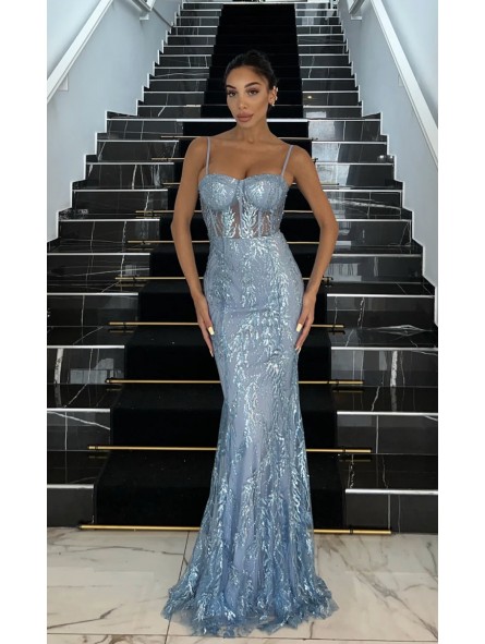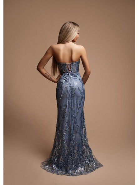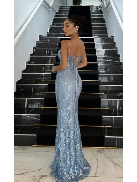 abito sirena super aderente ideale per i primi diciotto anni paillettato con corpetto a cuore  Il disegno realizzato con pailettes e glitter  ricorda i fondali marini costeggiati da rami di corallo, che ne danno particolarità e ricchezza le paillettes, più o meno significative che  potrebbero cadere all'apertura della confezione dell'abito non è da considerare un difetto
