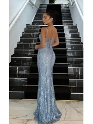 abito sirena glitter paillettato con tulle  con corpetto a cuore