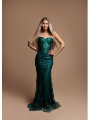 abito sirena glitter paillettato con tulle  con corpetto a cuore