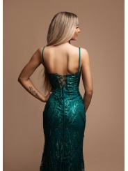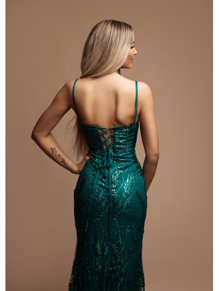 abito sirena super aderente ideale per i primi diciotto anni paillettato con corpetto a cuore  Il disegno realizzato con pailettes e glitter  ricorda i fondali marini costeggiati da rami di corallo, che ne danno particolarità e ricchezza le paillettes, più o meno significative che  potrebbero cadere all'apertura della confezione dell'abito non è da considerare un difetto