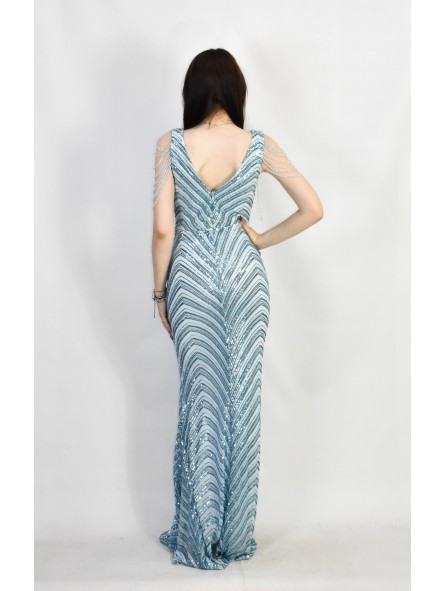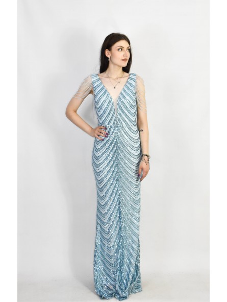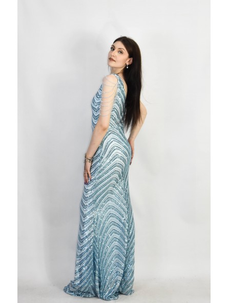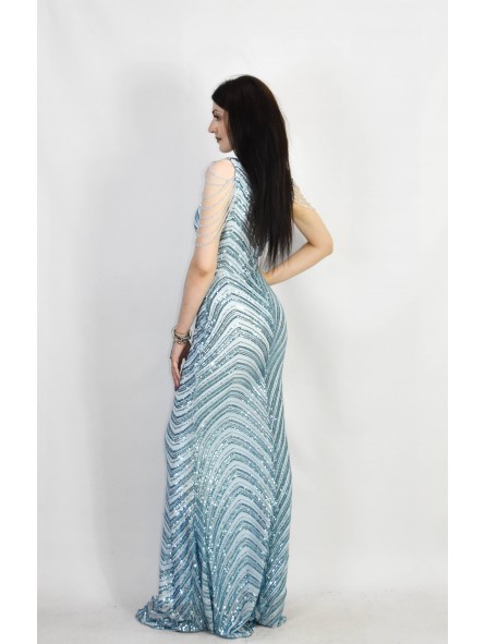 il non plus ultra delle sirene le paillettes sembrano formare le squame di una delle sirena che cercò di ammaliare Ulisse col suo canto. Grazie al tessuto elastico si adatta a qualsiasi corpo capace di renderlo unico e perfetto per tutte le forme anche le più Curvy, un mix di femminilità e sex appeal oltre ogni immaginazione, il tocco in più,i coralli in tinta cadenti a drappo sulle spalle riportandoci indietro di duemila anni ai tempi in cui le donne veniva venerate come Dee.L'abito da indossare per rendere qualsiasi evento unico da lasciare a bocca aperta uomini e donne...
