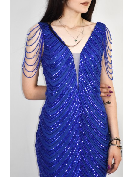 il non plus ultra delle sirene le paillettes sembrano formare le squame di una delle sirena che cercò di ammaliare Ulisse col suo canto. Grazie al tessuto elastico si adatta a qualsiasi corpo capace di renderlo unico e perfetto per tutte le forme anche le più Curvy, un mix di femminilità e sex appeal oltre ogni immaginazione, il tocco in più,i coralli in tinta cadenti a drappo sulle spalle riportandoci indietro di duemila anni ai tempi in cui le donne veniva venerate come Dee.L'abito da indossare per rendere qualsiasi evento unico da lasciare a bocca aperta uomini e donne...