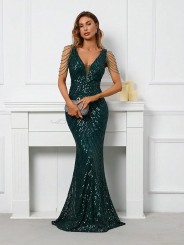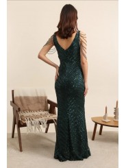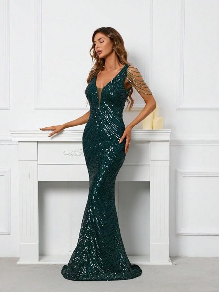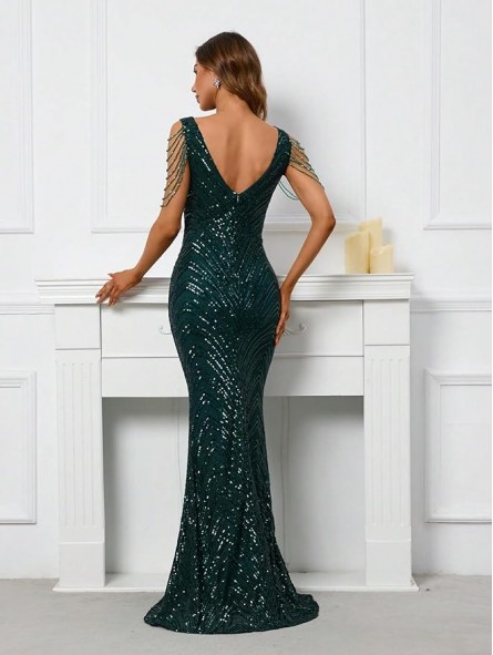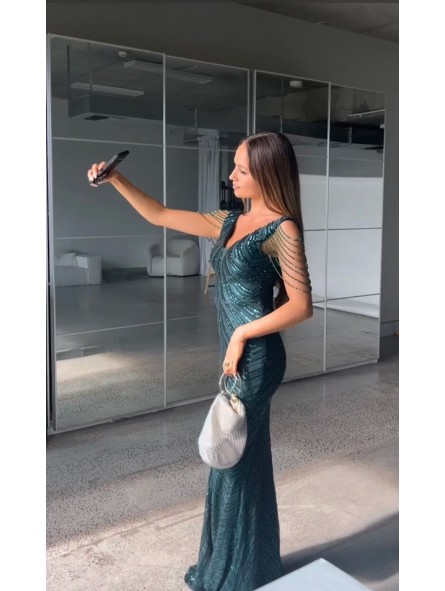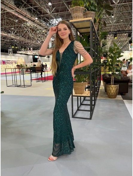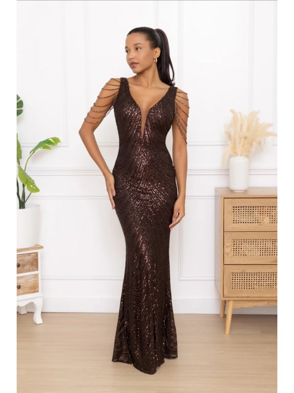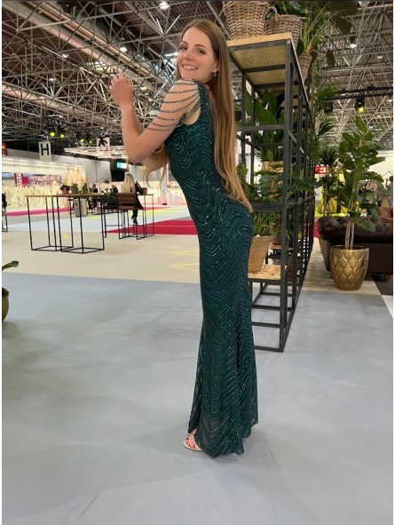 il non plus ultra delle sirene le paillettes sembrano formare le squame di una delle sirena che cercò di ammaliare Ulisse col suo canto. Grazie al tessuto elastico si adatta a qualsiasi corpo capace di renderlo unico e perfetto per tutte le forme anche le più Curvy, un mix di femminilità e sex appeal oltre ogni immaginazione, il tocco in più,i coralli in tinta cadenti a drappo sulle spalle riportandoci indietro di duemila anni ai tempi in cui le donne veniva venerate come Dee.L'abito da indossare per rendere qualsiasi evento unico da lasciare a bocca aperta uomini e donne...
