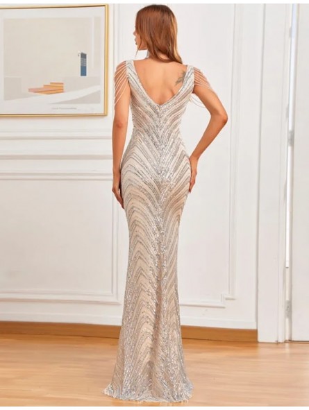 il non plus ultra delle sirene le paillettes sembrano formare le squame di una delle sirena che cercò di ammaliare Ulisse col suo canto. Grazie al tessuto elastico si adatta a qualsiasi corpo capace di renderlo unico e perfetto per tutte le forme anche le più Curvy, un mix di femminilità e sex appeal oltre ogni immaginazione, il tocco in più,i coralli in tinta cadenti a drappo sulle spalle riportandoci indietro di duemila anni ai tempi in cui le donne veniva venerate come Dee.L'abito da indossare per rendere qualsiasi evento unico da lasciare a bocca aperta uomini e donne...