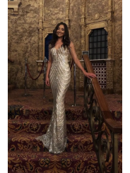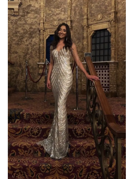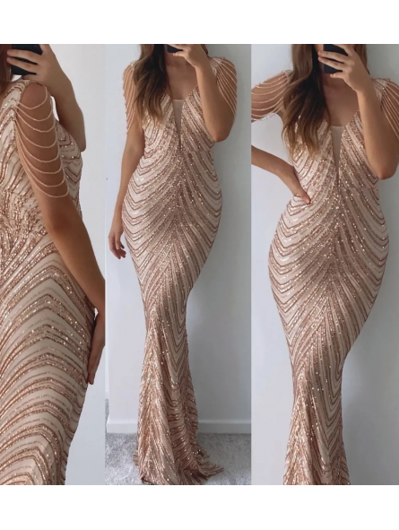 il non plus ultra delle sirene le paillettes sembrano formare le squame di una delle sirena che cercò di ammaliare Ulisse col suo canto. Grazie al tessuto elastico si adatta a qualsiasi corpo capace di renderlo unico e perfetto per tutte le forme anche le più Curvy, un mix di femminilità e sex appeal oltre ogni immaginazione, il tocco in più,i coralli in tinta cadenti a drappo sulle spalle riportandoci indietro di duemila anni ai tempi in cui le donne veniva venerate come Dee.L'abito da indossare per rendere qualsiasi evento unico da lasciare a bocca aperta uomini e donne...