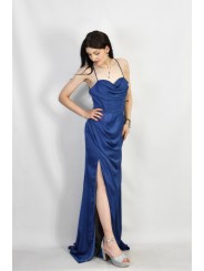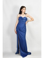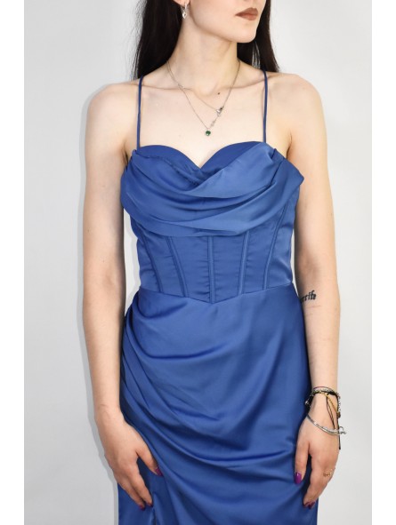 Abiti lunghi da donna a sirena plissettati, spalline sottili, abiti da damigella d'onore, abiti da sera plissettati con spacco