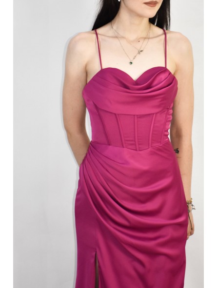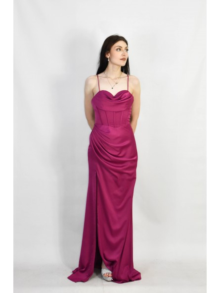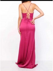Abiti lunghi da donna a sirena plissettati, spalline sottili, abiti da damigella d'onore, abiti da sera plissettati con spacco