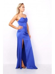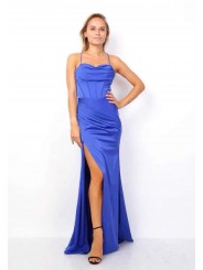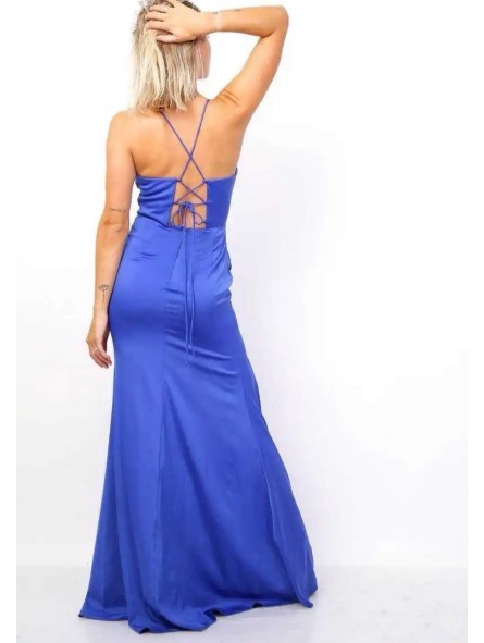 Abiti lunghi da donna a sirena plissettati, spalline sottili, abiti da damigella d'onore, abiti da sera plissettati con spacco