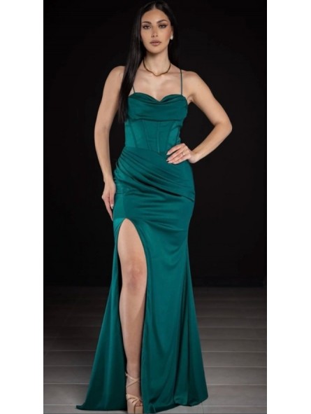 Abiti lunghi da donna a sirena plissettati, spalline sottili, abiti da damigella d'onore, abiti da sera plissettati con spacco