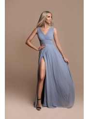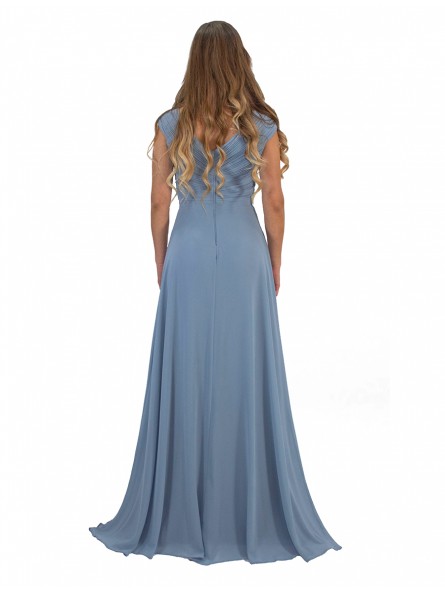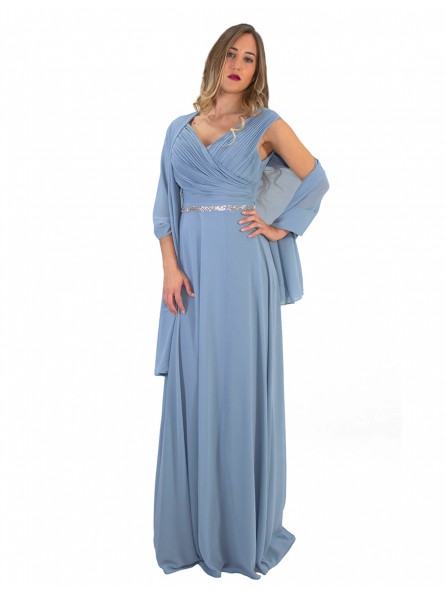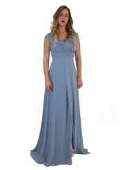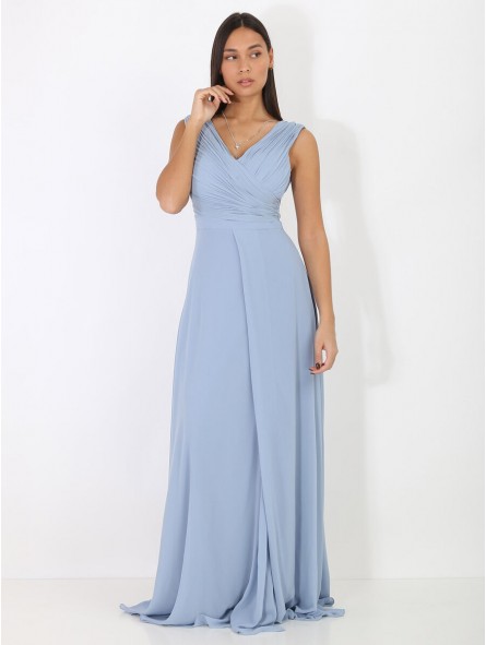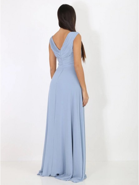 abito in georgette ideale per tutti gli eventi disponibile anche per taglie comode,Abito da sera con corpetto plissettato, profonda scollatura a V e gonna a trapezio dalla linea morbida e con spacco profondo. Una scelta ideale per eventi sociali se seguite il motto "c'è bellezza nella semplicità!"