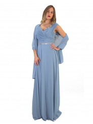 abito incrocio impero con bustino plissettato con spacco inguinale