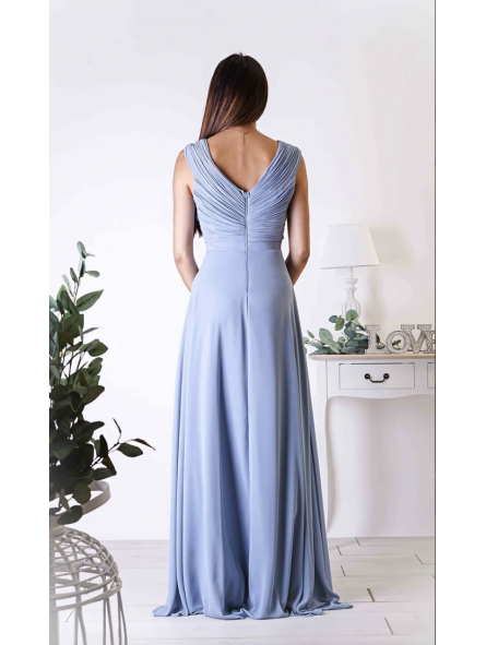 abito in georgette ideale per tutti gli eventi disponibile anche per taglie comode,Abito da sera con corpetto plissettato, profonda scollatura a V e gonna a trapezio dalla linea morbida e con spacco profondo. Una scelta ideale per eventi sociali se seguite il motto "c'è bellezza nella semplicità!"