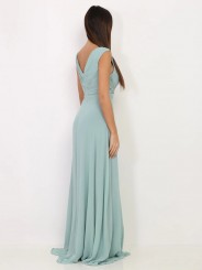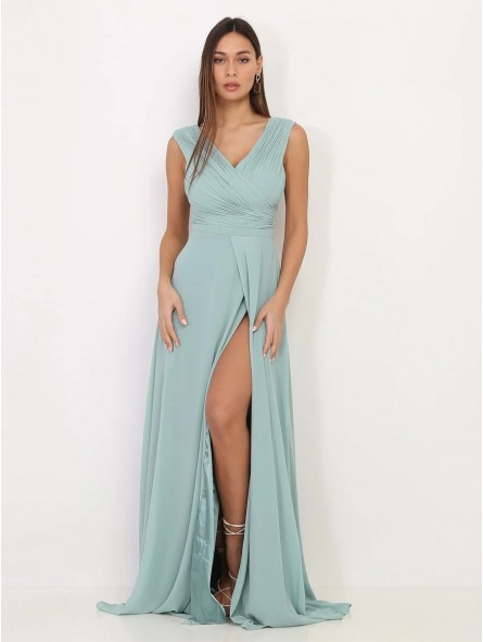 abito in georgette ideale per tutti gli eventi disponibile anche per taglie comode,Abito da sera con corpetto plissettato, profonda scollatura a V e gonna a trapezio dalla linea morbida e con spacco profondo. Una scelta ideale per eventi sociali se seguite il motto "c'è bellezza nella semplicità!"