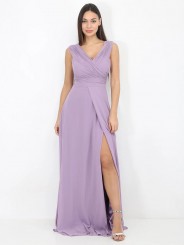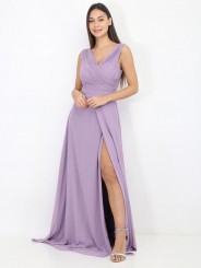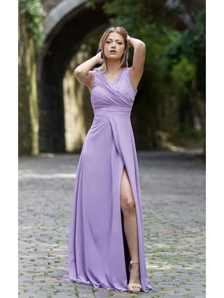 abito in georgette ideale per tutti gli eventi disponibile anche per taglie comode,Abito da sera con corpetto plissettato, profonda scollatura a V e gonna a trapezio dalla linea morbida e con spacco profondo. Una scelta ideale per eventi sociali se seguite il motto "c'è bellezza nella semplicità!"