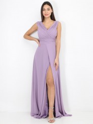 abito incrocio impero con bustino plissettato con spacco inguinale