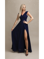 abito incrocio impero con bustino plissettato con spacco inguinale