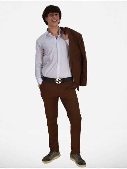 - Pantalone tasca America anteriore tasche posteriori a filetto conbottone, taschino impunturato con doppio rinforzo.