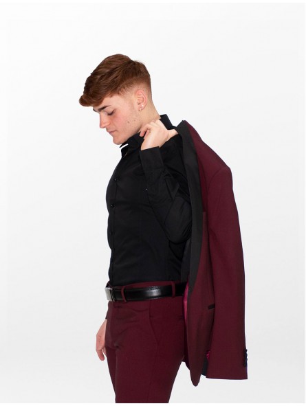 Abito tipo smoking con petto raso sciallato lucido  un bottone con tasche a friso rivestite e bottoni ricoperti in raso vestibilità slim drop/7